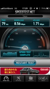 お店の前(外)でなんどかスピードテストをしてみましたが3GもLTEもさほど速度は変わらないですね。